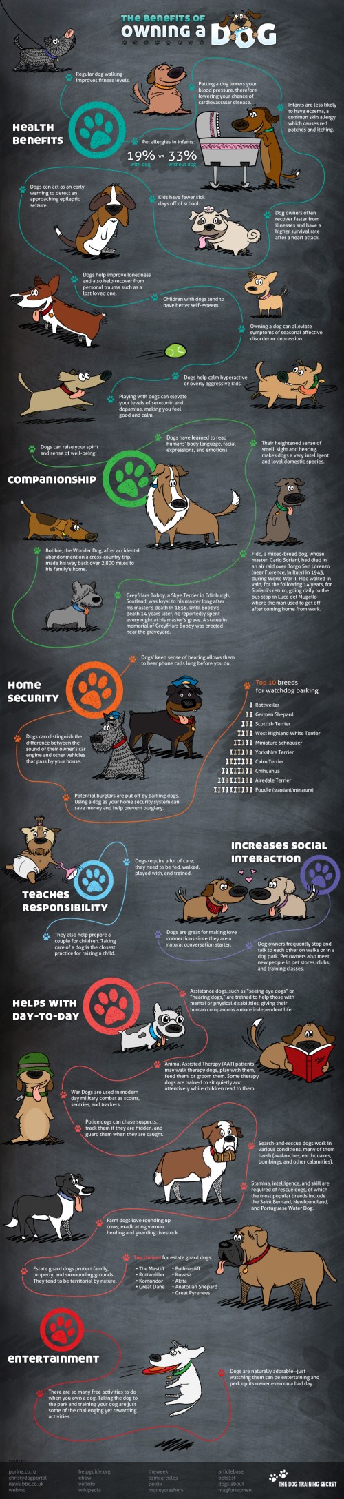 – Son un importante apoyo para personas discapacitadas, convirtiéndose en ojos, oídos y piernas de muchas de ellas. Así como, complemento en el tratamiento de personas con enfermedades mentales, actividades de salvamento en desastres naturales…